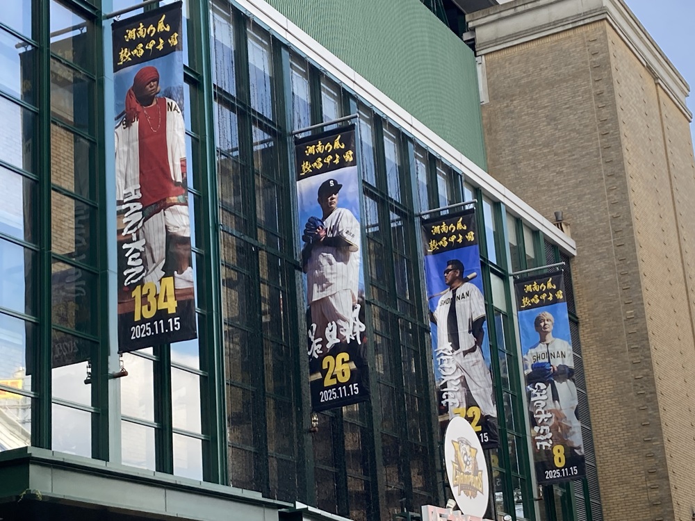 甲子園球場前正面と甲子園駅のバナーが交換されました