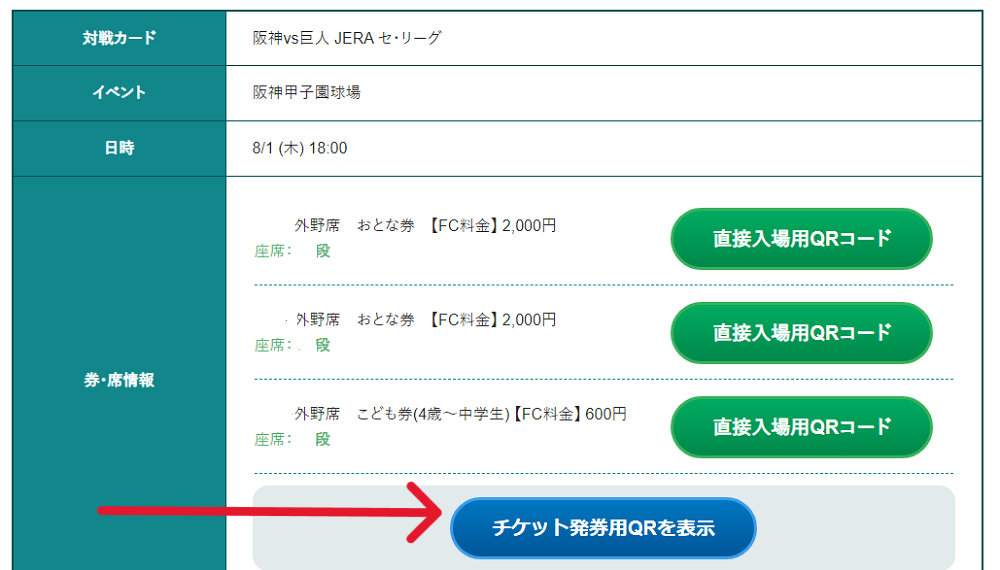 「高校野球」のチケットは、TigersIDの登録は不要です