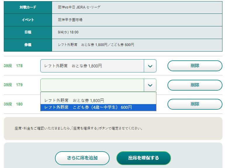 枚数を選んだら「座席を確保する」ボタンを押してください