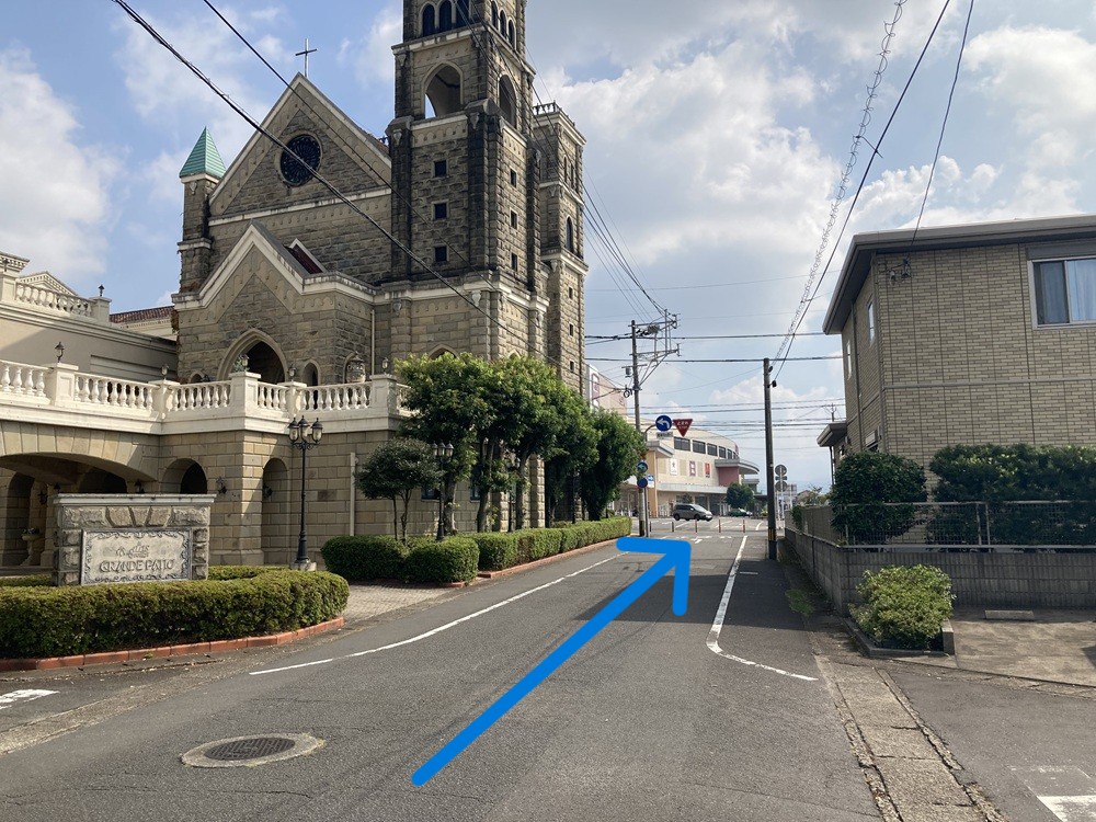 ファミリーマート(妻ヶ丘店)の交差点を「左」に曲がります。